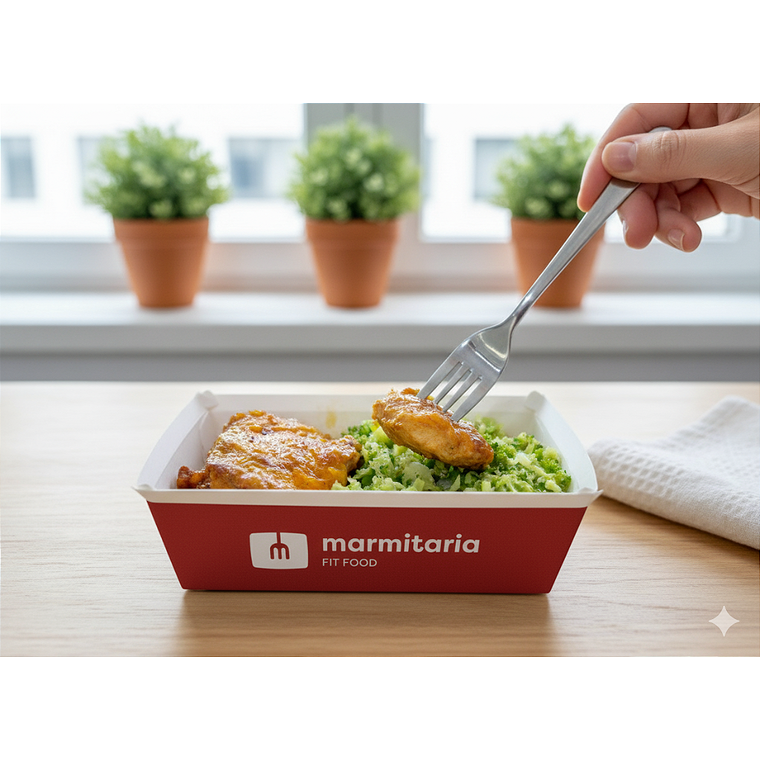 Experimente o Filé de Sobrecoxa com Arroz de Brócolis da Marmitaria Fit Food. A escolha ideal para um prato gourmet, saudável e cheio de sabor.