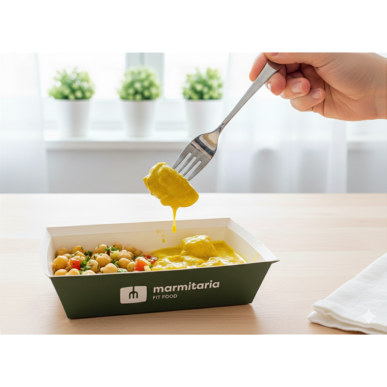 Frango em Cubos com Molho de Laranja e Salada de Grão de Bico Assinatura