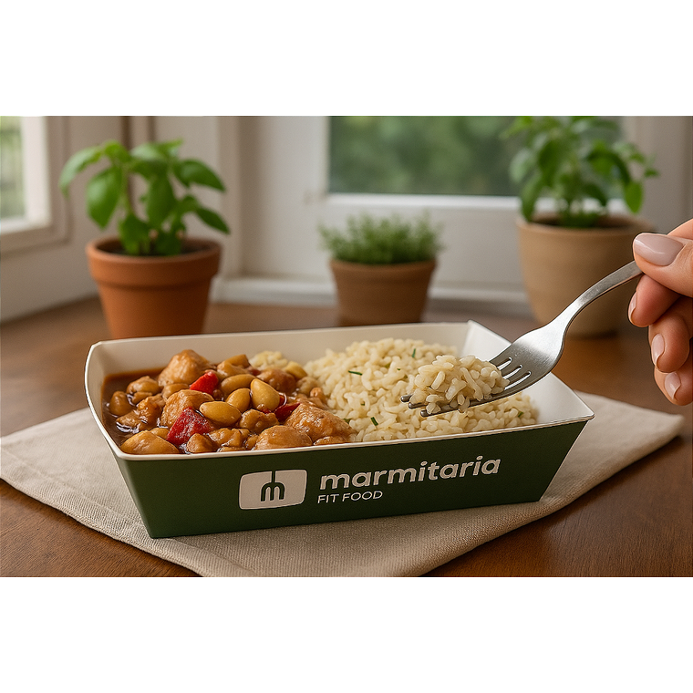 Delicie-se com nosso Frango Xadrez com Arroz Integral, uma refeição prática e saborosa. Combinação perfeita de proteínas magras e grãos integrais, temperada com shoyo light e vegetais crocantes, ideal para um almoço ou jantar balanceado.